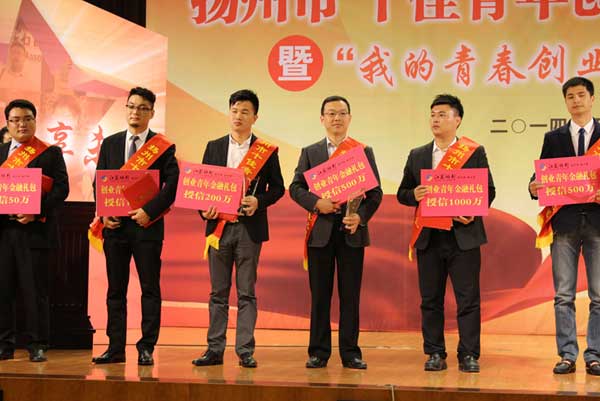 會(huì)議表彰了第五屆“揚(yáng)州市十佳青年創(chuàng)業(yè)之星”及獲得提名獎(jiǎng)的20名創(chuàng)業(yè)青年,同時(shí)為“十佳青年創(chuàng)業(yè)之星”提供了50萬元-1000萬元不等的授信貸款金融支持。